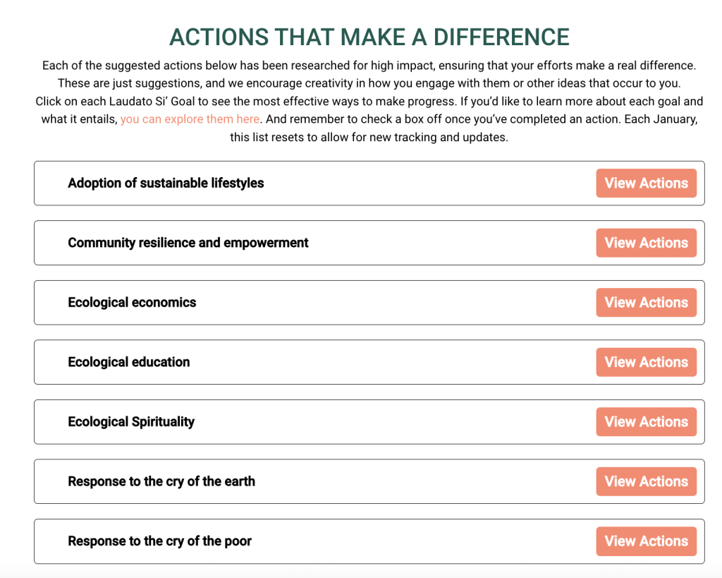 You’ll still mark those actions again if you are doing them this year. Why? Because the platform tracks ongoing Christian environmental stewardship, not just one-time success.