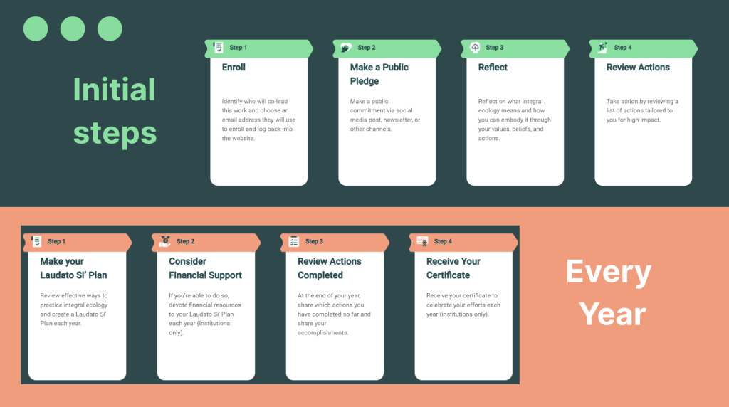 The Laudato Si’ Action Platform respects that reality. It does not ask you to become something else. It simply offers a structure that supports what you already do: